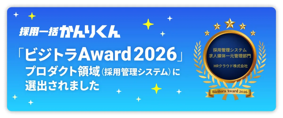 HRクラウド株式会社が提供する「採用一括かんりくん」が、BtoB向けの比較・マッチングメディア「ビジトラ」が主催する「ビジトラAward 2026」において、採用管理システムのカテゴリーで受賞しました。この選出は、同社の優れたテクノロジーとサービスが業界において高く評価された証です。