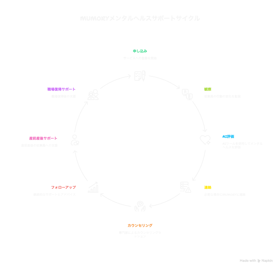 このプロセスを通じて、『MUMORY』は「気づく」「つなぐ」「見守る」を実現し、女性が安心して働き続けられる社会を作り上げることを目指しています。