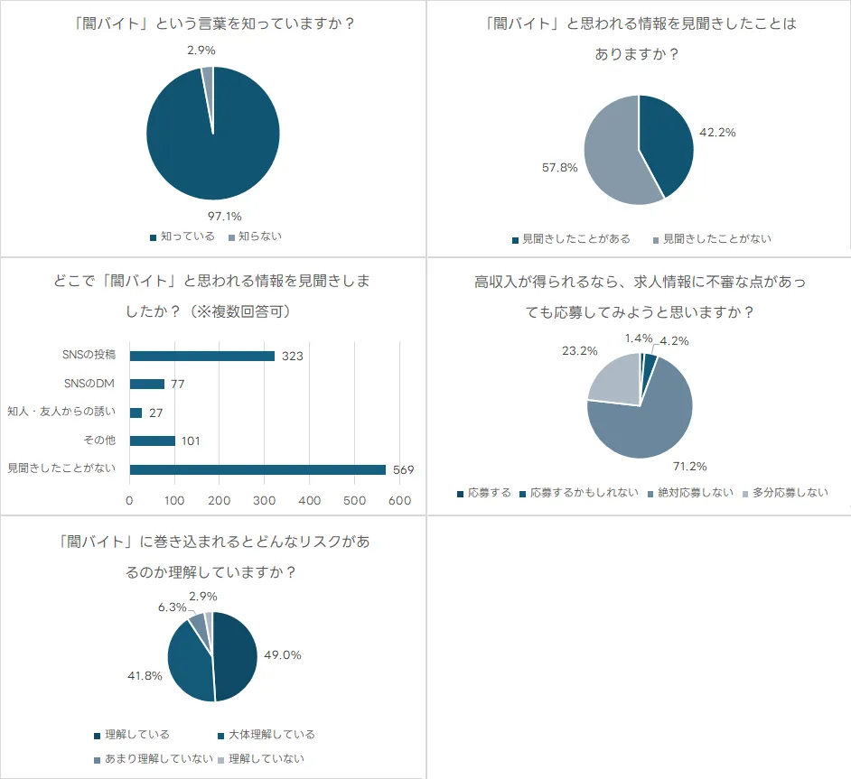 これらのデータは、多くの人々が「闇バイト」ついての危険性を理解している一方で、リスクを伴う行動を選択する可能性もあることを示しています。