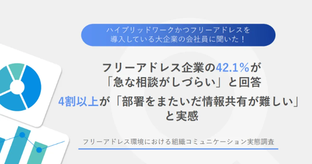 実践的な解決策が求められる現在、フリーアドレス環境が持つ潜在的な弱点にしっかりと向き合い、適切な情報共有とコミュニケーション手段を整えることが重要です。組織文化の変革や、業務効率の向上を目指す企業にとって、この調査結果は今後の方針策定への重要な一助となるでしょう。