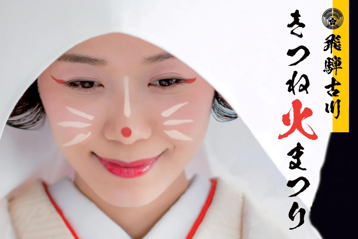 毎年、飛騨市古川町の市街地で行われるこの祭り。ゆったりとした時の流れを感じられる情緒ある町並みの中で、様々なイベントが展開されます。特に注目されるのは、夜に行われる「嫁入り行列」。この行列では、人力車に乗った花嫁と花婿が松明を持った狐の大群に囲まれ、幻想的な光景が広がります。見物客は、この行列を通じて願い事が叶うとされています。
