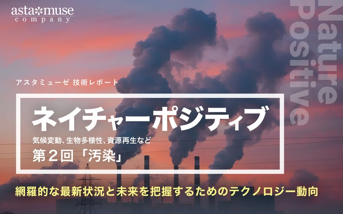 TNFD(自然関連財務情報開示タスクフォース)では、汚染やその除去に対する計画と評価が行われています。汚染の対象として、土壌や水源、大気中への汚染物質の排出、廃棄物処理、プラスチック汚染が挙げられています。アスタミューゼでは、これを「広義のポジティブ」「狭義のポジティブ」「モニタリング」の3つに分け、各技術の動向を分析しています。