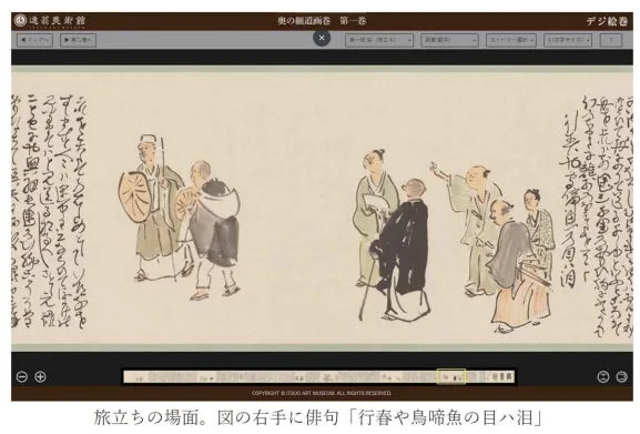 2023年5月16日、阪急文化財団が運営する逸翁美術館のオンライン絵巻物鑑賞サイト「デジ絵巻〜奥の細道画巻〜」が公開されました。このサイトは、多くの絵巻物を収蔵する逸翁美術館の豊かなコレクションをより多くの人々に楽しんでもらうために開設されたものです。