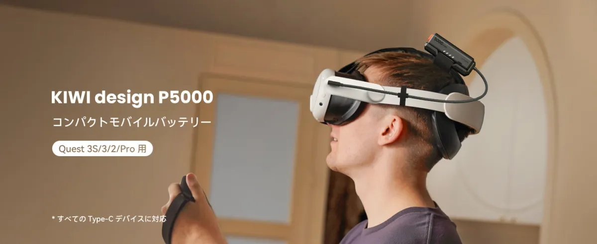 さらに、KIWI designはP5000の価値を引き出すために、Quest 3/3S用のK4・H4コンフォートヘッドストラップと組み合わせることで、電力の持続性と装着時の快適さを同時に実現しました。これにより、ユーザーは物理的な制約から完全に解放され、VRの世界に一層没頭することができます。