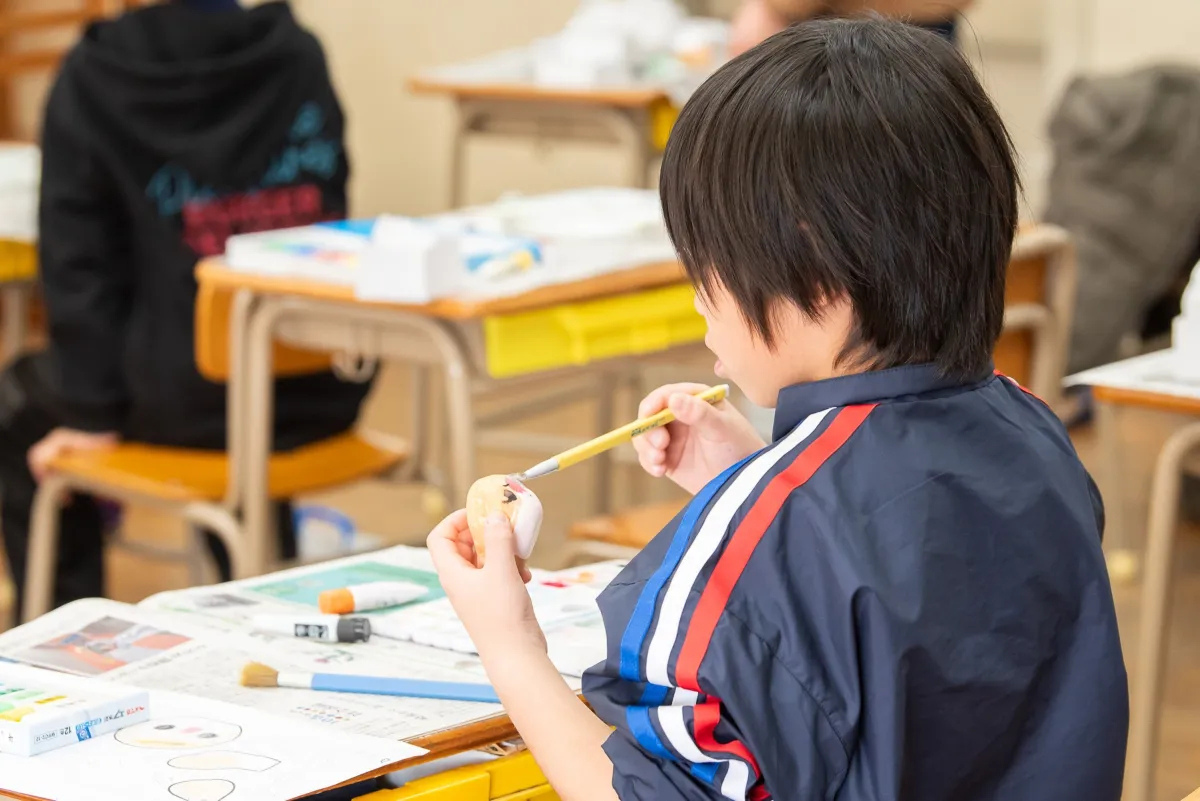 出前授業では、博多人形師の中村弘峰氏が講師となり、歴史や制作技術を学べる座学と素焼き人形への絵付け体験を行いました。子どもたちは本物の伝統工芸に触れ、自由に表現する楽しさを実感しました。それを通じて、社員にも同様の体験をさせることで、地域貢献の理解を深めることが狙いです。