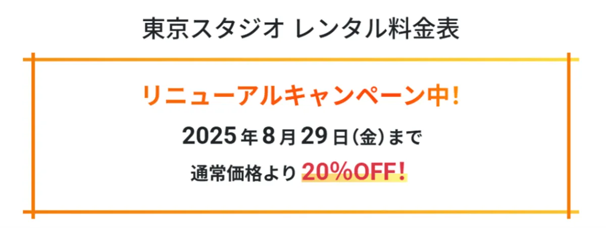このキャンペーンは2025年8月29日までの申し込みに限り適用されるもので、4時間コースが70,400円(税込)、8時間コースが88,000円(税込)という非常にお得な価格設定となっています。ただし、キャンペーンの利用条件としてスタジオ利用実績が法人名として同社のホームページに掲載されることが求められますので、注意が必要です。また、東京本社スタジオ限定のキャンペーンであり、西日本のスタジオは対象外です。