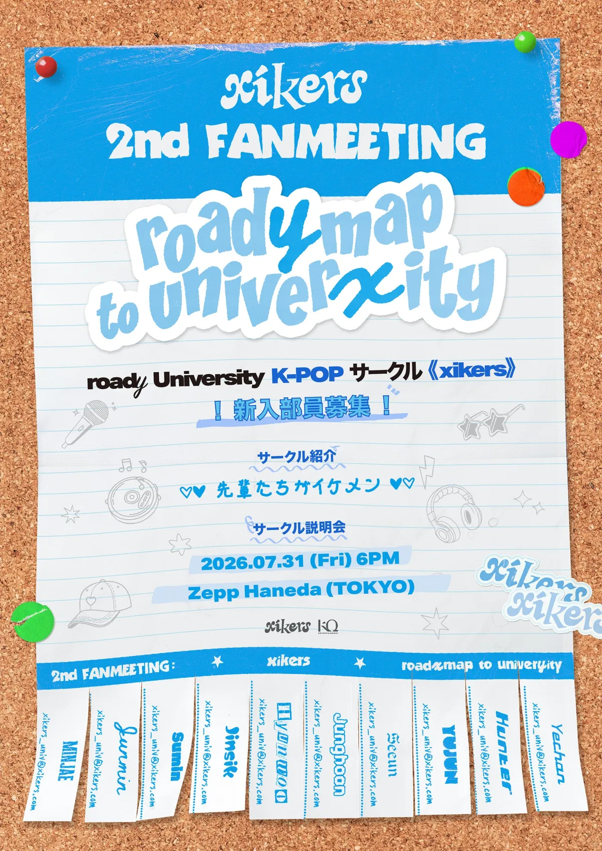 韓国の10人組ボーイズグループ、xikers(サイカース)が2026年7月31日(金)に、Zepp Haneda (TOKYO)で「2nd FANMEETING : roadymap to univerxity」を行うことが決まりました。昨年、韓国デビューから目覚ましい躍進を遂げ、世界中のファンを魅了している彼ら。今回は、ファンミーティングという特別なイベントで、どのようなメニューが用意されるのか、期待が高まります。