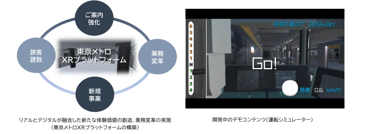提携を通じて、東京メトロの鉄道施設をバーチャル空間に再現することで、利用者は新たな視点から東京メトロ線を楽しむことができるようになります。また、オリジナルの3Dコンテンツやゲームの開発、バーチャル訓練といった業務変革を実現することにも取り組みます。