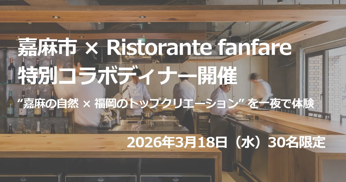 福岡市の中心部、大名にある人気イタリアン「Ristorante fanfare」。このレストランが、嘉麻市の厳選された6つの食材をつかった特別なディナーイベントを開催します。その名も「Kama-City × Ristorante fanfare 2026 vol.1」。このイベントは、地域の生産者の物語を感じながら、シェフの料理の創造性を同時に体験できる貴重な機会です。