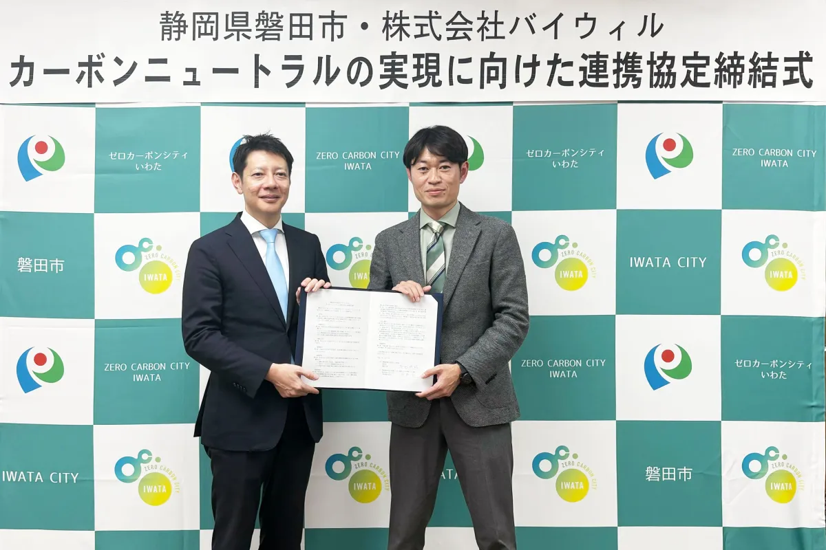 2025年1月17日、静岡県磐田市と東京都に本社を置く株式会社バイウィルは、カーボンニュートラル実現に向けた連携協定を締結しました。これにより、両者は地域の環境価値の創出および流通に取り組み、新たな事業やサービスの開発を推進していく方針です。