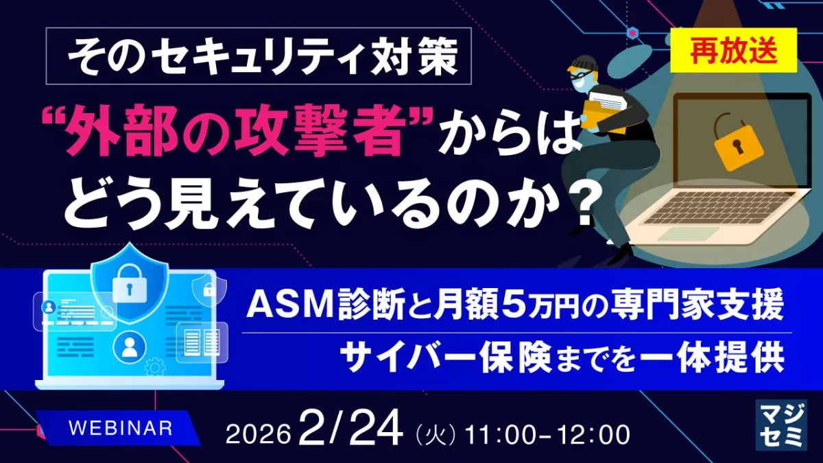 本ウェビナーでは、セキュリティ対策において「見える化」や「初動」、「補償」の重要性を理解し、攻撃者の視点で自社を見直す方法について具体的なアプローチをお伝えします。主催は株式会社PFUで、協力として株式会社オープンソース活用研究所とマジセミ株式会社が参加します。