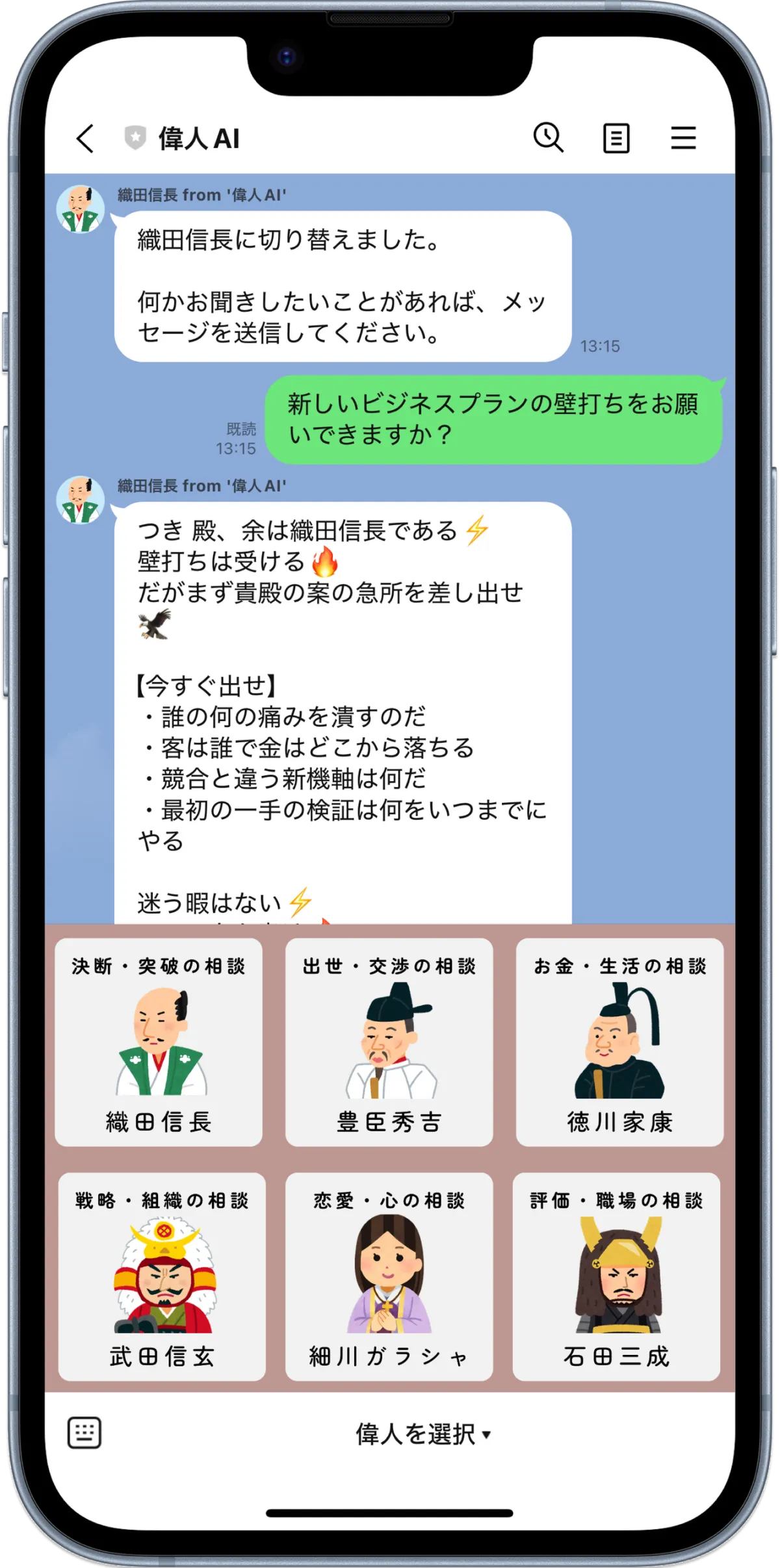見た目も含め、多くの方が親しみやすいデザインが施されており、例えば「どうすれば計画がうまくいくか?」と相談をしてみると、選んだ偉人がその視点からのアドバイスを提供します。これにより、普段は気づかなかった思考のフレームワークに触れることができ、エンターテインメント性も兼ね備えた「考えることそのものに向き合うAI体験」を提供します。