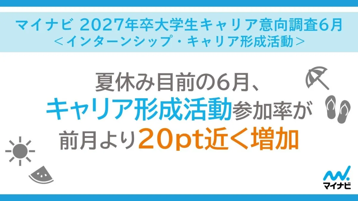株式会社マイナビが発表した「2027年卒大学生キャリア意向調査」の結果、インターンシップやキャリア形成活動への参加率が大きく伸びていることが明らかになりました。この調査は全国の大学生や大学院生2,511名を対象に実施され、大学生活のスタートを切ったばかりの学生たちのキャリアに対する意識が探られました。
