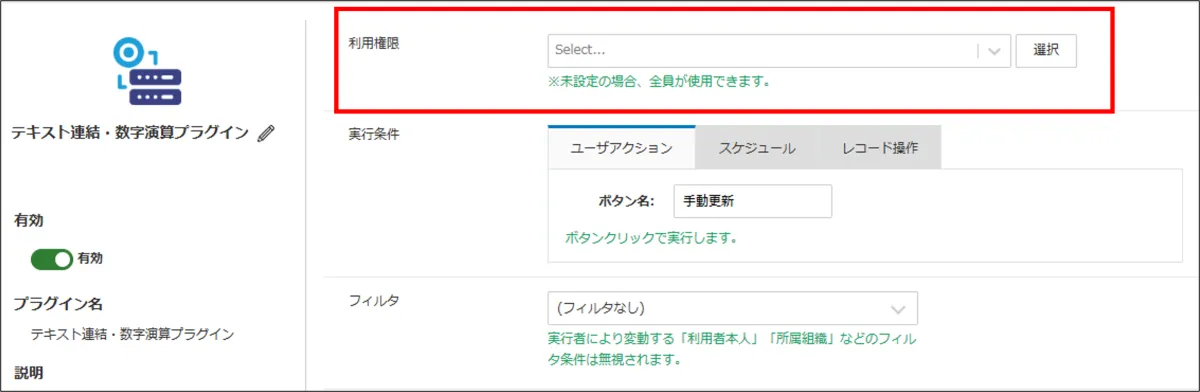 今回のアップデートでは、プラグインごとに利用権限を設定できる機能が追加されます。これにより、特定のユーザーだけにプラグインの「実行ボタン」へのアクセス権を与えることが可能になります。これによってセキュリティが強化され、業務におけるプラグインの使い方がより一層洗練されるでしょう。