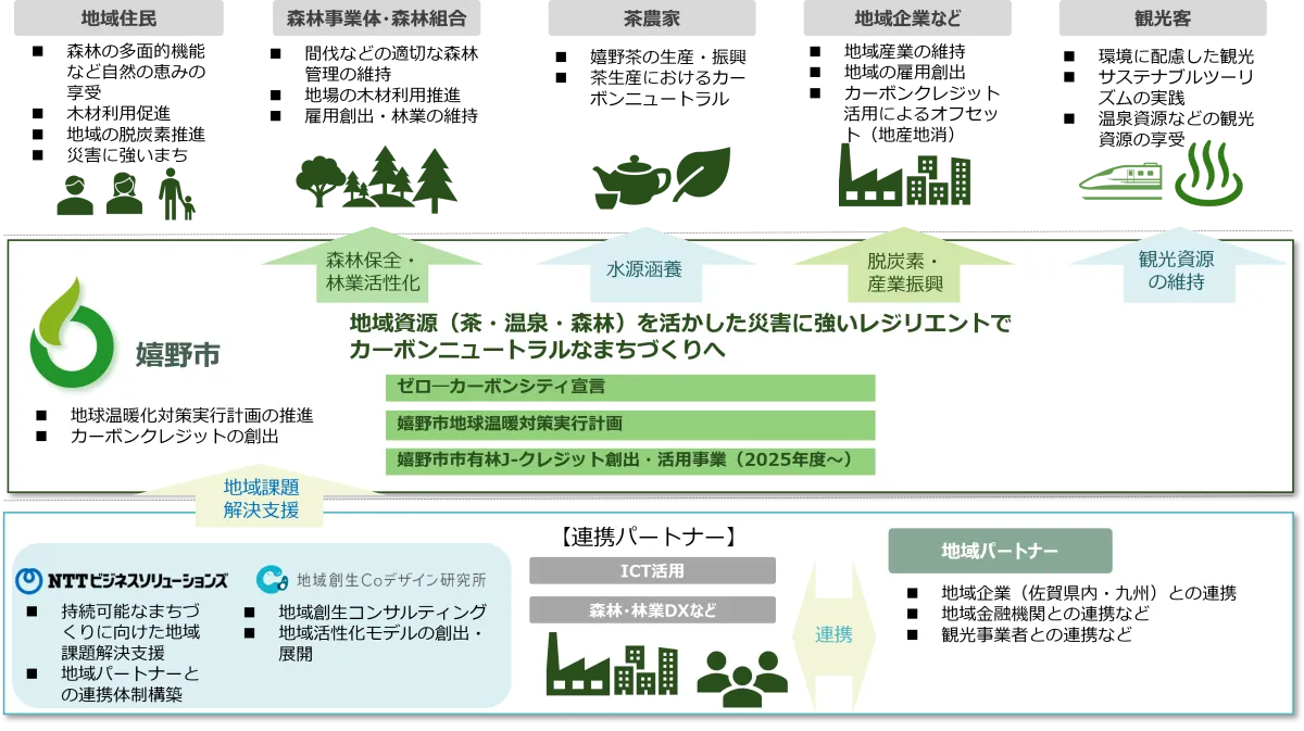 嬉野市は、地域資源である森林を活用した「嬉野市市有林J-クレジット創出・活用事業」を立ち上げ、2025年から本格的にスタートします。この事業では、市有林の環境保全活動を通じて温室効果ガスの吸収量を高め、J-クレジットを創出することを目指します。NTTビジネスソリューションズと地域創生Coデザイン研究所が協力し、地域経済と環境保全の両立を図っています。