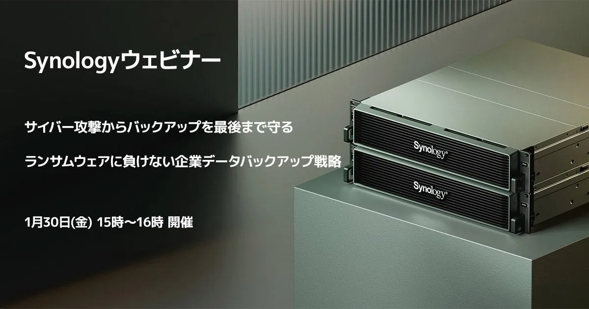 - - セミナー名: Synologyウェビナー「サイバー攻撃からバックアップを最後まで守る・ランサムウェアに負けない企業データバックアップ戦略」