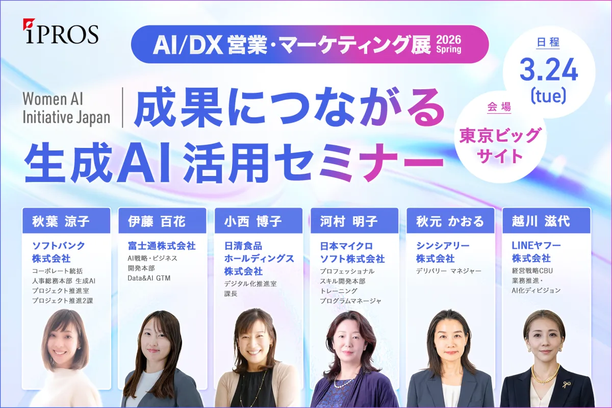 2026年3月24日、25日に東京ビッグサイトで開催される「AI/DX営業・マーケティング展 2026 Spring」において、Women AI Initiative Japanが初めて参画します。自らの成功事例とともに、現場での実践的なAI活用を促進するために集まった女性たちが、国内最大規模のセミナーを通じてその知見を共有します。