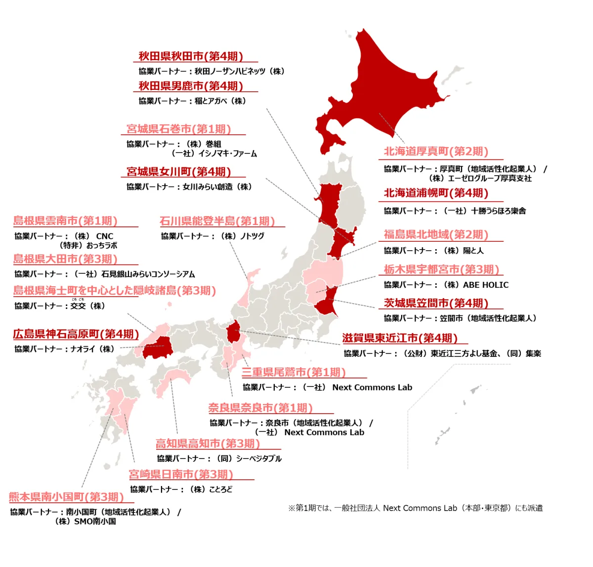 派遣先地域には、北海道の浦幌町や、秋田県の男鹿市・秋田市、宮城県の女川町、茨城県の笠間市、滋賀県の東近江市、広島県の神石高原町が含まれており、それぞれ地域活性化に取り組む企業や団体と連携しながら活動を進めます。具体的な協業パートナーには、一般社団法人十勝うらほろ樂舎やナオライ株式会社など、多様な組織が参加しています。これにより、地域ごとに異なるニーズや課題への対応が期待されています。