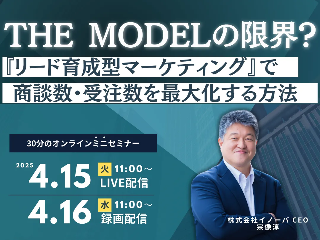 株式会社イノーバ(本社:東京都新宿区、代表取締役:宗像淳)は、2025年4月15日(火)と16日(水)の2日間にわたり、オンラインで「リード育成型マーケティング」をテーマとしたセミナーを無料で開催します。このセミナーでは、営業部門が抱える課題を解決し、商談数や受注数を最大化するための手法を具体的に解説します。