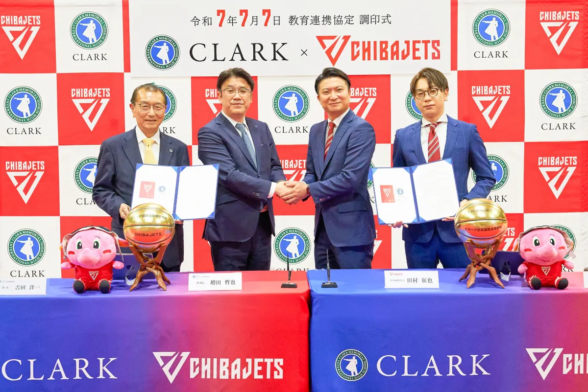 2025年7月7日、IPU・環太平洋大学の東京キャンパスにて、正式な調印式が行われ、千葉ジェッツの田村征也社長や池内勇太取締役、クラーク国際の増田理事長、吉田校長が出席しました。ここで、両者の熱意あふれるメッセージが交わされ、未来へのビジョンが描かれました。