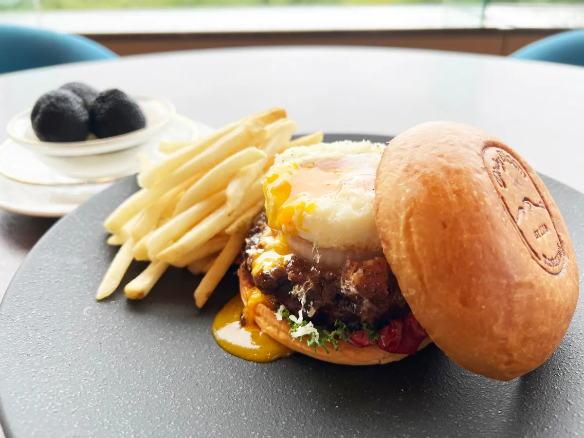 提供時には、シェフが目の前でトリュフを削るパフォーマンスもあり、その場の雰囲気と共に贅沢な香りが漂います。美味しさだけでなく、視覚と嗅覚でも楽しむことができる、この「ASAMAお月見バーガー」は、食事の時間を特別なものにしてくれるでしょう。