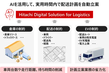 日立が開発したこの技術は、AIを活用して複数の要件を考慮しながら配送計画を自動的に立案する「Hitachi Digital Solution for Logistics」(HDSL)です。この中の「EV充電配送」サービスが中心となっており、物流とエネルギー、デジタル技術の融合を目指しています。これにより、自律的に判断し行動するフィジカルAIの進化を促進し、流通業や製造業への展開が進められています。