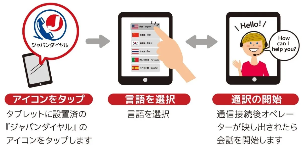 「ジャパンダイヤル」は多岐にわたる業種で実績を上げており、銀行やクレジットカードに関する問い合わせ、保険の示談交渉、航空券の予約・変更、鉄道のお問い合わせなど、さまざまなシチュエーションに対応してきました。また、外国人従業員の研修や行政手続き、ATMや機器保守、宿泊施設での顧客対応など、現場での要望にも応えています。