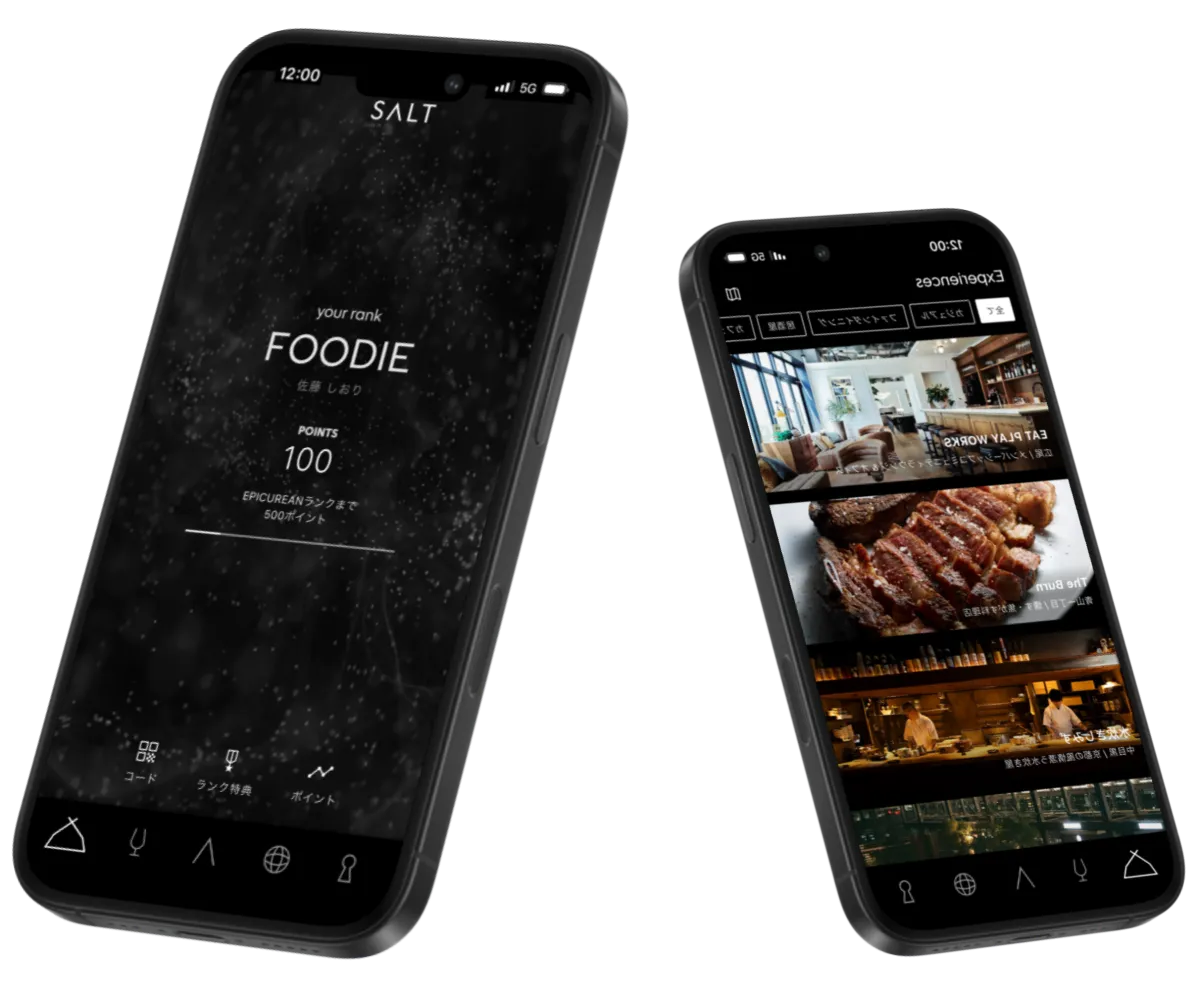「SALT」は、ソルト・グループの飲食施設とその利用者が相互にコミュニケーションを図ることができる新感覚のプラットフォームです。このアプリにより、飲食店での体験がより豊かになることを目指しています。初回登録の特典として、会員制グランピング施設「TOKYO CLASSIC CAMP」の宿泊予約権や、メンバーシップ・アウトドア・パーク「SUNSET PARK CLUB」の1日体験など、魅力的なプレゼントも用意されています。