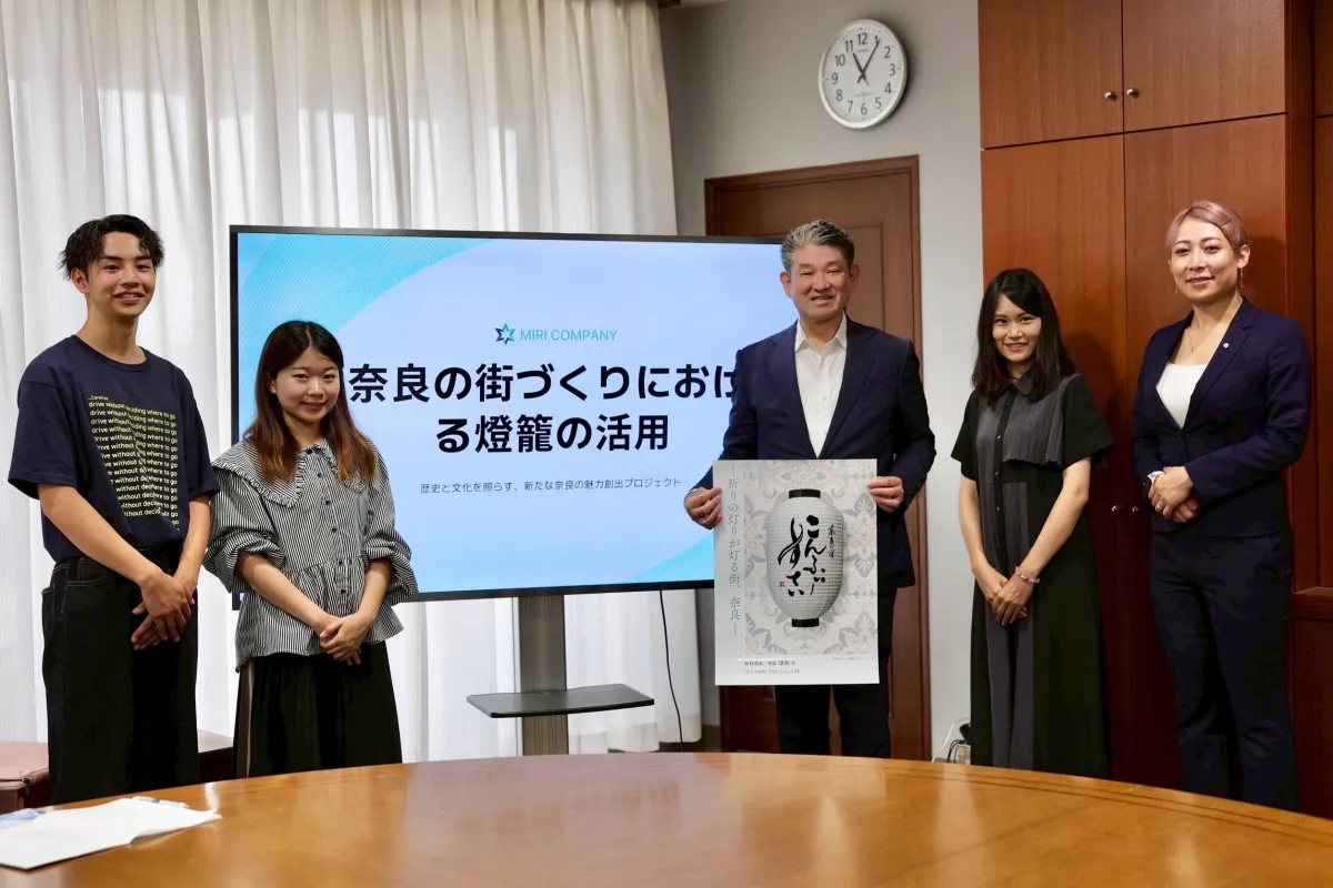 プロジェクトの目玉である提灯は、全国的に活躍する妖怪書家・逢香(おうか)氏によって制作されました。逢香氏の温かみを感じる力強い筆文字が「こんふぃーすてい」と記されているこの提灯は、奈良の魅力を存分に引き立てる存在となることでしょう。完成した提灯は、奈良市長の仲川げん氏にも紹介され、地域文化や観光の振興について意見交換が行われました。