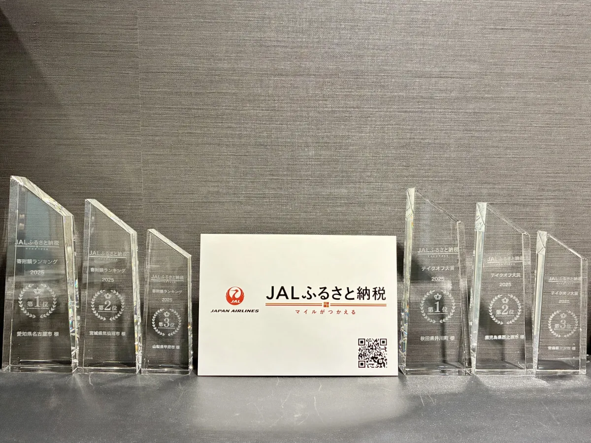 受賞した各自治体には、特製トロフィーが授与されます。また、これを機に各自治体の首長からのメッセージや地域の魅力を、JALふるさと納税の会員向けメルマガを通じてお届けする制度も整えられています。