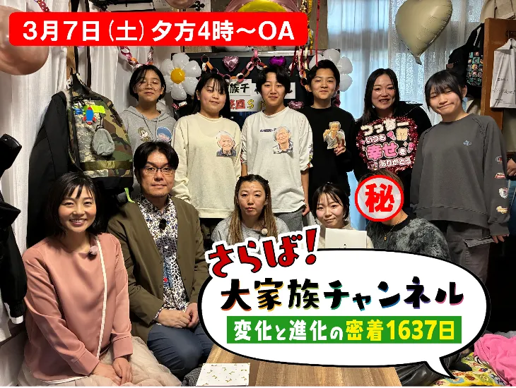 「さらば!大家族チャンネル」の放送は2026年3月7日(土)午後4時から。エピソードを見ながら、視聴者にはクイズが用意されていて、正解者の中からは豪華なQUOカードが当たるチャンスもあります。家族の絆を描いた感動のストーリーをお楽しみに!