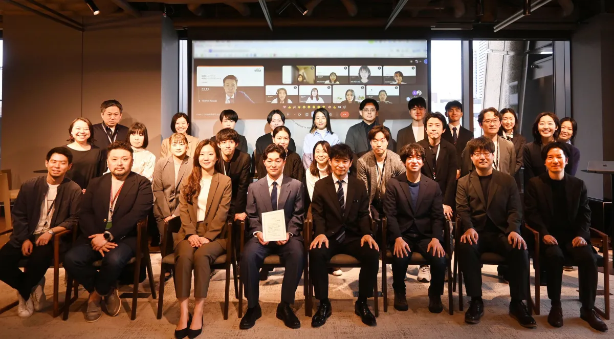 2026年4月1日、株式会社ケップルグループは2026年度の新卒入社式を開催しました。今年、この式典で迎え入れられたのは新卒第2期生となる1名の新入社員。会場での対面式とオンラインのハイブリッド形式で行われ、会社全体が新しい仲間の誕生を祝いました。