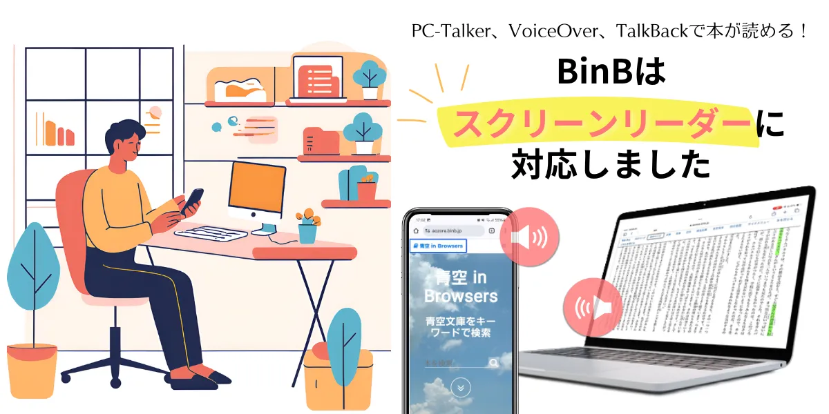 スクリーンリーダーは、画面上のテキストやユーザーインターフェースの要素を音声で読み上げる技術です。新たにBinBが対応したことで、視覚障害者は直感的に操作を行いながら、作品の内容や読書体験を音声で楽しめるようになります。これにより、電子書籍のアクセスビリティが一新され、すべての読者に向けた公平な読書環境が整いました。