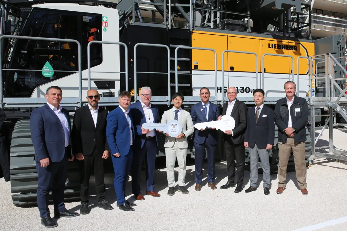 新型機は、地盤改良工事においてその高い性能を発揮します。引き渡しは、Liebherr社との強固な協力関係を象徴する出来事であり、BaumaのLiebherrブースで盛大に行われました。出席したのは、大京建機の内田祐大朗専務取締役や経営企画室の瀬戸岳雄氏、リープヘル社の代表者たちです。