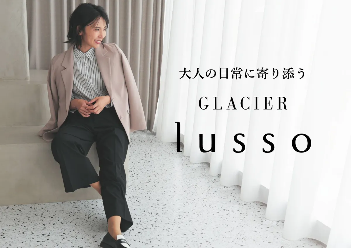 『GLACIER lusso』は、年齢を重ねた大人のためにしっかりとしたシルエットや着心地の良さにこだわり、多様なライフスタイルにフィットするアイテムを展開しています。最近のファッションは若者向けと見られがちですが、同ブランドは「いつでも、いつまでもオシャレな私」をテーマに掲げ、年齢や体型変化に惑わされず、自分らしさを大事にしたいと願う方々へ寄り添っています。