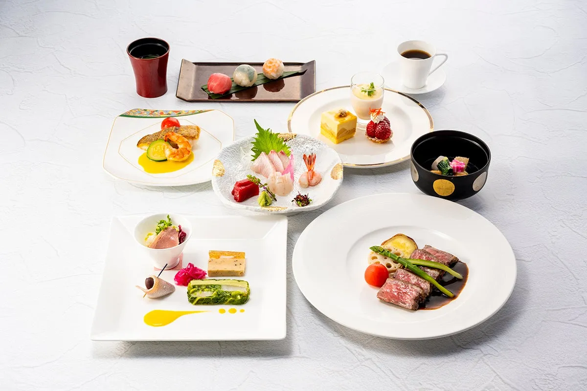 このプランのコンセプトは「五感で奏でる、金沢の記憶」です。北陸・金沢の旬の食材を贅沢に使用し、視覚、味覚、香りで楽しむ仕掛けが満載です。例えば、近江町市場から仕入れた新鮮な魚を用いたお造りはその美しさに目を奪われ、加賀味噌や能登しいたけの豊かな香りが広がります。