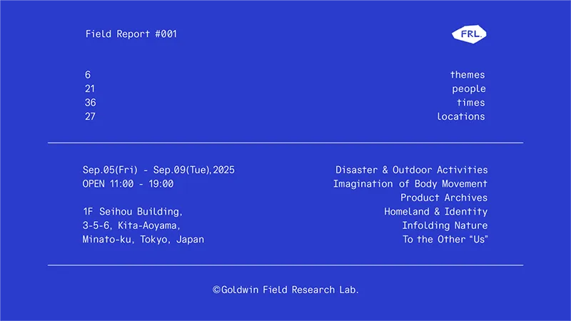 株式会社ゴールドウインは、リサーチラボ「Goldwin Field Research Lab.」が1周年を迎えるにあたり、初のエキシビション「Field Report #001」を開催します。ここでは、2025年9月5日から9日までの5日間、東京本社のイベントスペースで行われる予定です。このエキシビションでは、過去1年間の活動を振り返り、多様なテーマに基づくリサーチ成果が共有されます。
