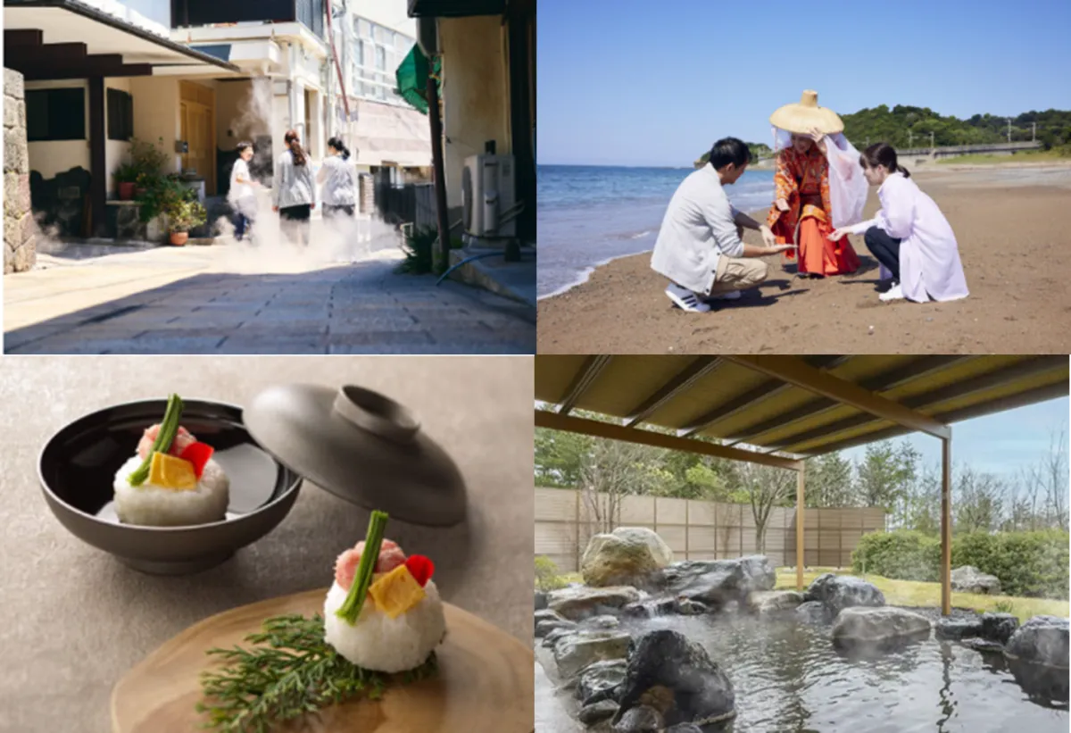 熊野古道を巡るプログラムでは、古の巡礼姿である壺装束を纏ったガイドとともに、海岸沿いのルートを探索します。ここでは歴史背景や当時の参詣について学び、深い文化体験が得られます。