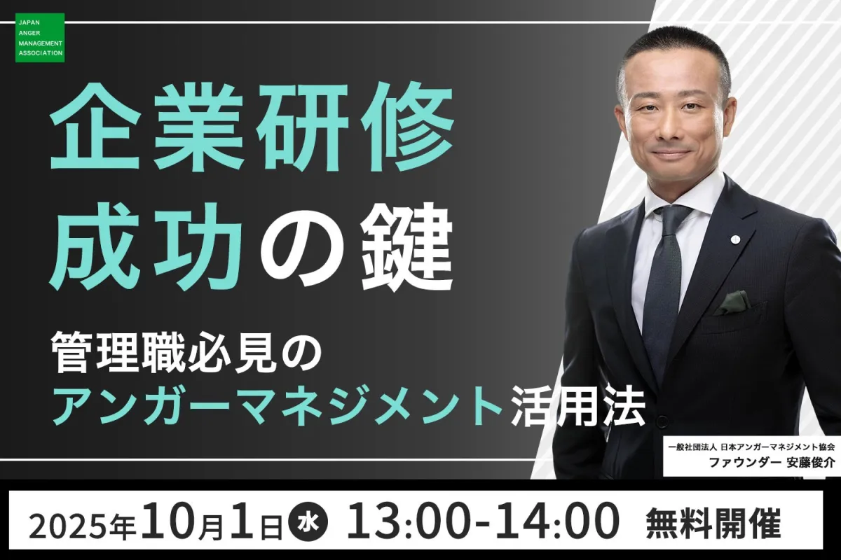 「企業研修成功の鍵!管理職必須のアンガーマネジメント活用法とは」が、2025年10月1日(水)に配信されることが決まりました。このセミナーでは、企業の成長を支えるための管理職研修における重要な要素として、アンガーマネジメントの必須スキルを解説します。