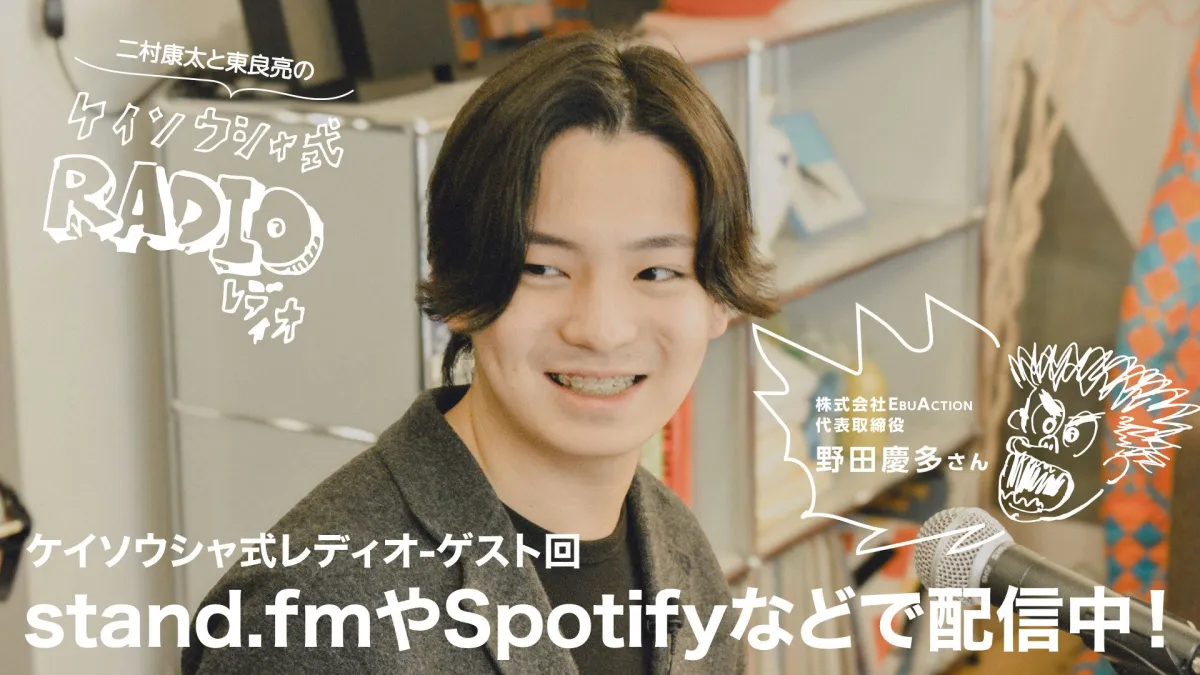 今回の放送は新たなトーク企画「ケイソウシャ式ビジネス四方山話」の第一回目となります。この企画は、事前に議題を細かく決めず、ゲストの語りを基に進行するスタイルを採用しており、より自然体の会話を通じて多くの人にインスピレーションを提供する狙いがあります。初回のお客様は、株式会社EbuAction代表取締役の野田慶多氏です。