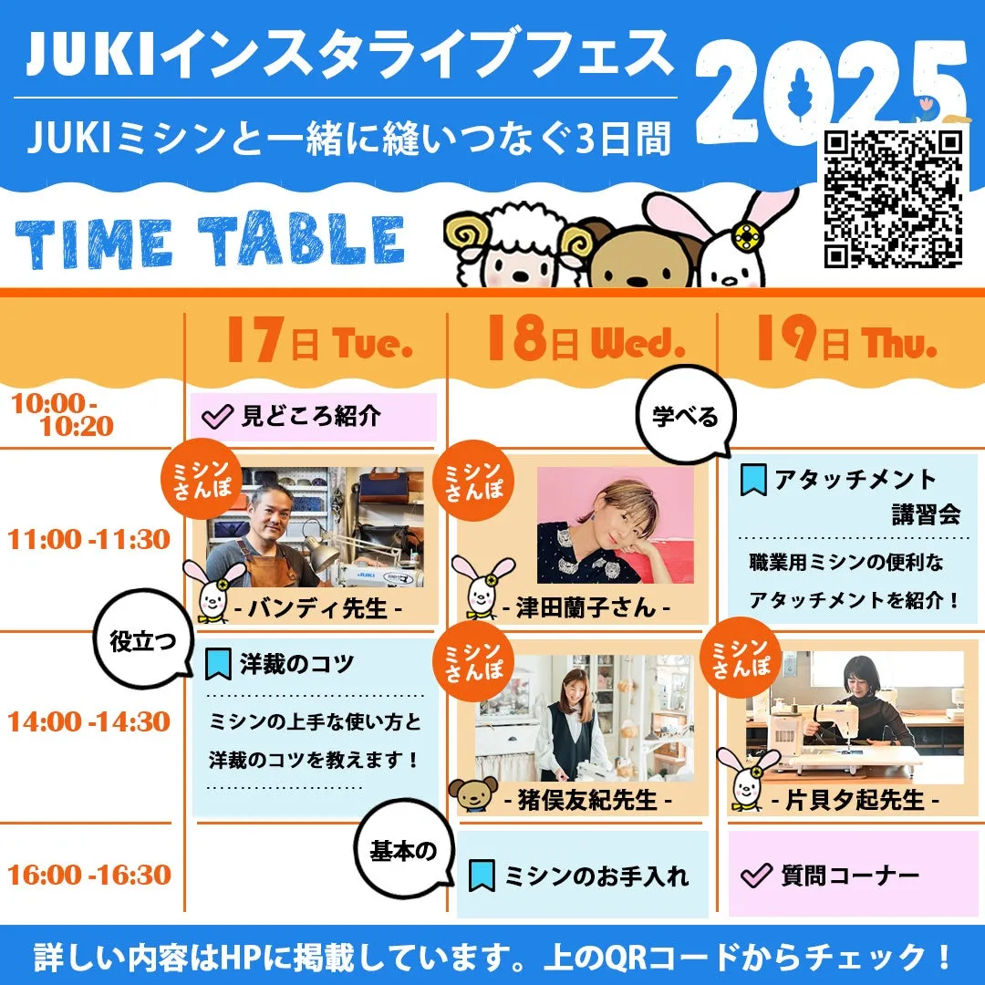 - - 参加方法: JUKI家庭用ミシンの公式Instagramアカウントにアクセスしてライブ配信を視聴できます。