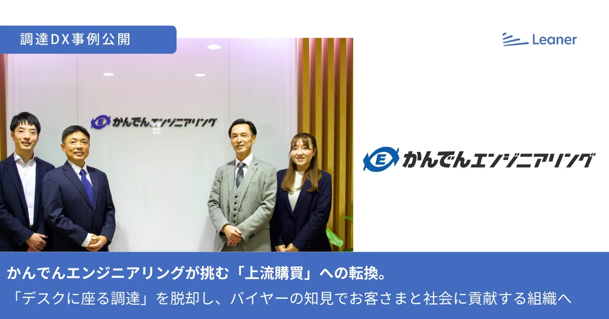 株式会社Leaner Technologies(以下、リーナー)は、電力・通信インフラを支える株式会社かんでんエンジニアリング(以下、かんでんエンジニアリング)に、調達DXプラットフォーム「リーナー見積」を導入した事例を発表しました。この取り組みにより、かんでんエンジニアリングは従来の業務スタイルを見直し、業務効率を大幅に向上させることを目指しています。