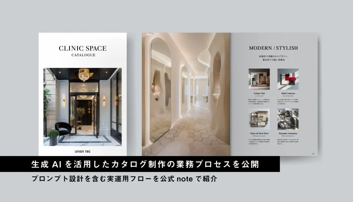 ユニオンテックは「Build a new standard.」を企業のミッションに掲げ、空間デザイン業界での革新を目指しています。2025年11月には「クリニックスペースカタログ」を発行予定で、その制作過程において生成AIを積極的に活用しています。公式noteでは、同社がどのように生成AIを導入し、実業務に組み込んでいるのかを詳細に公開しています。