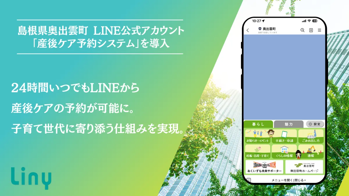 島根県奥出雲町は、育児を行うお母さんとその赤ちゃんをサポートするために、LINEを活用した「産後ケア予約システム」を開始しました。このシステムにより、産後のケアを求める母親たちは、電話や対面での手続きに加え、普段から使用しているLINEアプリで、手軽にケアの予約を行えるようになります。