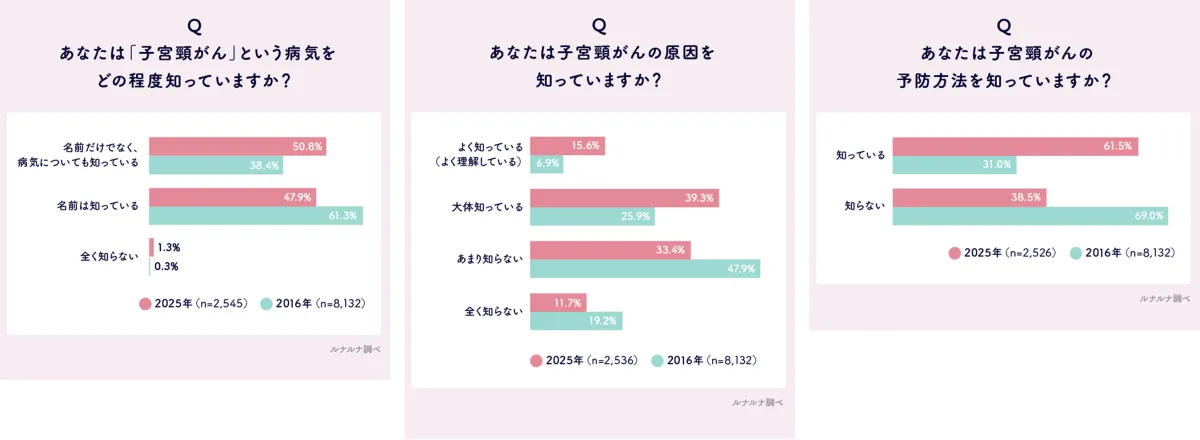 この調査は、2016年から毎年実施されているもので、今回は2,611名の女性から有効回答を得ました。調査は2025年3月6日から10日にかけて行われました。結果によると、子宮頸がんの知識が着実に増加していることが明らかになりました。