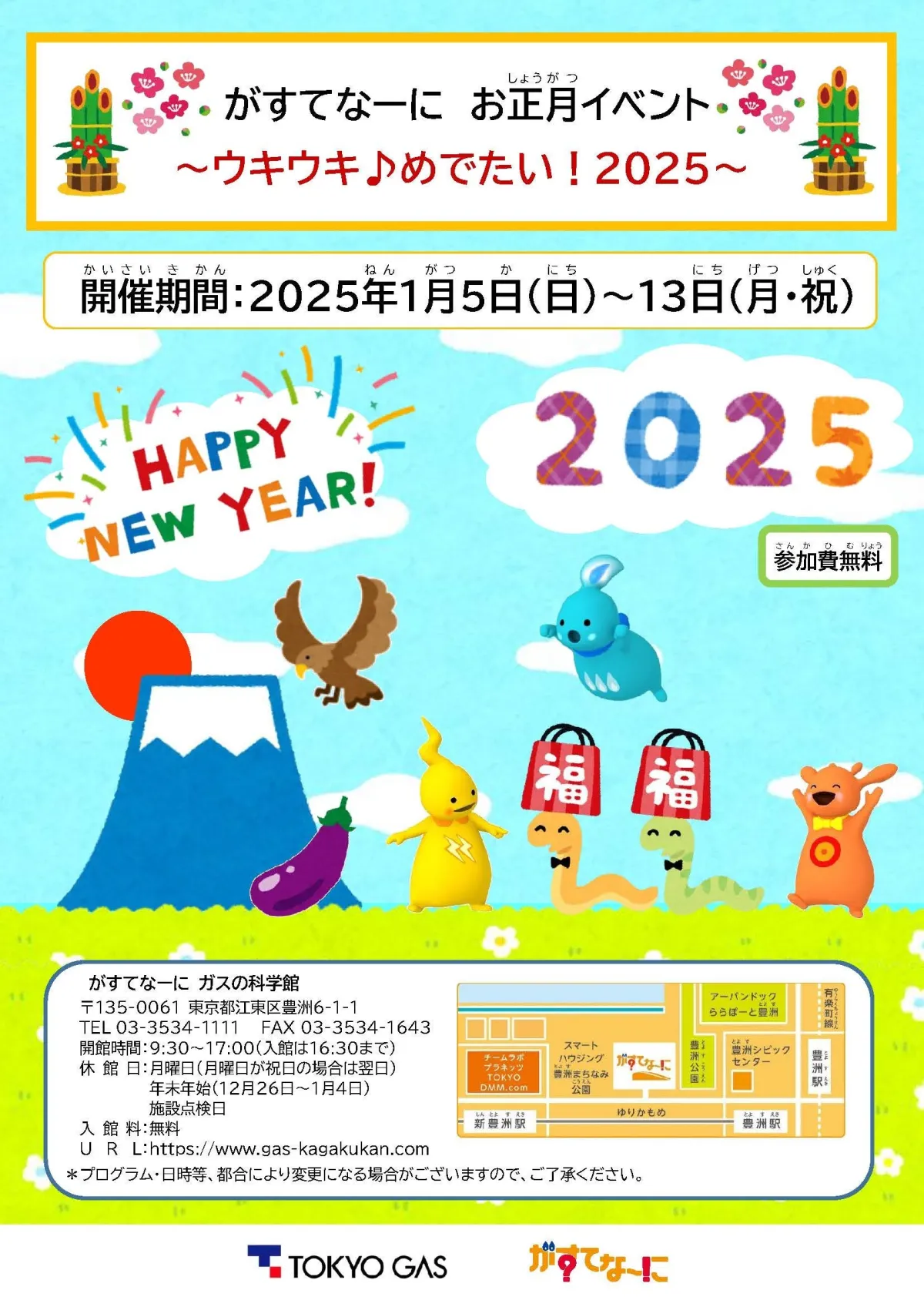 子どもから大人まで、幅広い年齢層が楽しめるイベントが満載の確かな機会。ぜひ、2025年のお正月をがすてなーにガスの科学館でお祝いし、素晴らしい思い出を作りに来てください!
