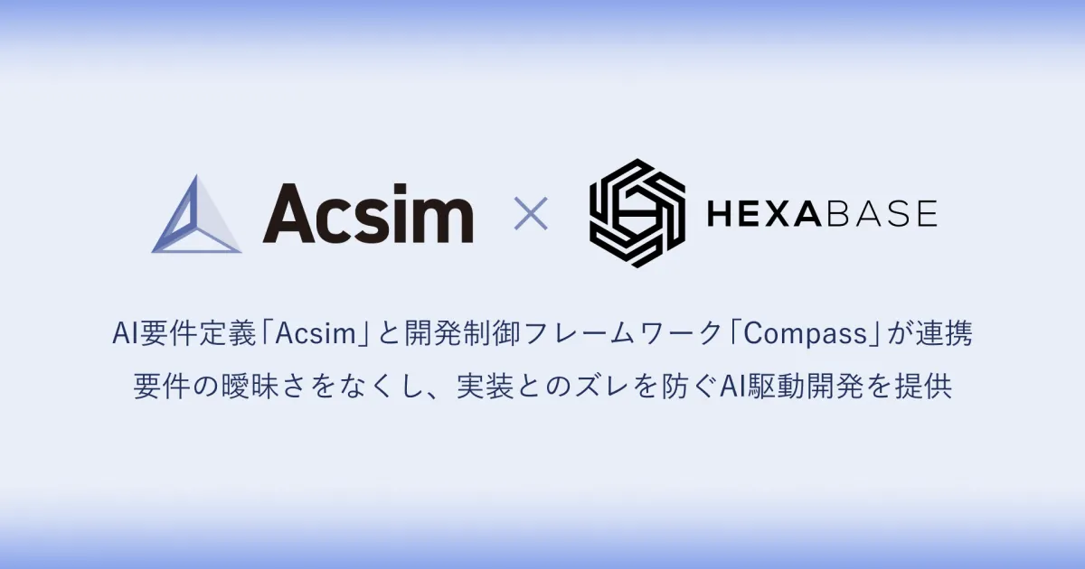 株式会社ROUTE06(本社:東京都千代田区、以下「ROUTE06」)は、AI要件定義サービス「Acsim」と、AI駆動開発フレームワーク「Compass」を提供する株式会社Hexabase(同じく本社:東京都千代田区)との協業を発表しました。この連携により、要件定義と実装の一貫性を保ちながら、AI駆動の開発プロセスを効率化し、高品質なソフトウェア開発を実現します。