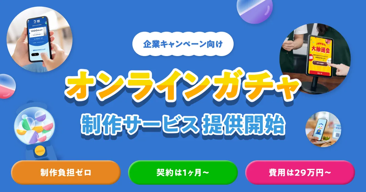 オンラインガチャは、ユーザーがスマートフォンやタブレットを使って簡単に参加できる、遊び心満載のデジタル抽選コンテンツです。自社で設定した当選内容や確率に基づいて実施されるため、企業はキャンペーンの目的に応じてカスタマイズができます。これにより、集客効果を高め、SNSでの拡散も期待できるようになります。