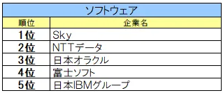 最初に紹介するのはソフトウェア部門の人気企業です。以下が上位5社です。
