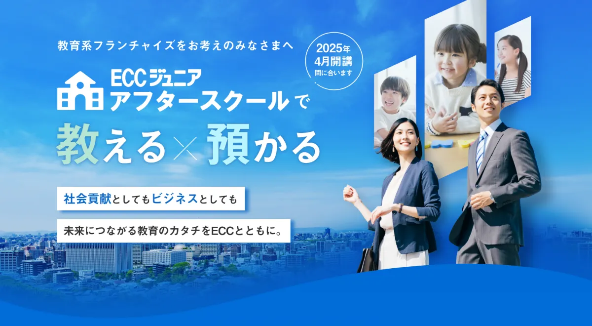 さらに、「ECCジュニアアフタースクール」はフランチャイズモデルも採用しています。初期投資を抑えつつ少人数での運営が可能なため、教育ビジネスに興味がある方でも始めやすい条件が整っています。ECCが提供するカリキュラムやノウハウに基づき、しっかりとしたサポート体制があるため、安心して運営できます。